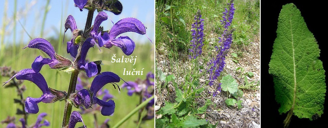 Vědecké i české jméno je pravděpodobně odvozeno z latinského "salvus" ("zdravý"). Šalvěj luční je už dávno školním příkladem vzájemného přizpůsobení květů a hmyzu, které pozoroval Christian Konrad Sprengel (1750-1816) a popsal ho v díle o tajemstvích vznikání přírody a oplodňování květin. Na nektar z květů šalvěje luční, který se nachází až na dně květové trubky, mohou dosáhnout pouze včely a č meláci.