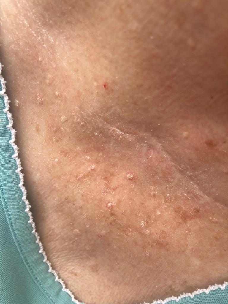 Před dvaceti lety maminku porazilo auto, má po několika operacích mozku, shunt. Od roku 2021 o ni pečujeme. Maminka bere trvale léky - biston, merformin, risperdal, rivotril, omeprazo a cipralex. Léky po celou dobu neměnila, pouze občas přidáme vitamíny - C, B, D, hořčík, vápník, Asi v březnu se mamince začala obejvovat svědivá vyrážka, kožní lékařka a praktička si neví rady, prý se to starým lidem stává. Minulý rok maminka dlouhé měsíce ošklivě kašlala bez jiných příznaků. Maminka má rozum malého dítěte, nosí pleny, bez pomoci druhých je nepohyblivá. Vyrážka se horší, lékařka napsala dithiaden, prednison, masti, zkoušíme vše možné - kortikoidy-belogent, zinkové masti, mléka z lékárna urea a sprchové gely. Vyrážka se horší, poslední mast doporučená v lékárna - activon. Maminka má již po těle krvavé vřídky, škrábe se - nemá rozum, celé noci křičí, svědí jí celé tělo, krvavé povlečení. MOc se trápí. Nyní začalo svědit tělo i pečující osoby - mě dceru, tatínka - manžela, pečovatelku, bez zjevné vyřázky. Opravdu si nevím rady a přivítáme jakoukoli radu a pomoc. Děkujeme moc.